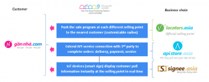 One of the outstanding products in the gầnnhà.com is Signee.asia – Smart Sign. This IoT device is able to display information of the nearest “authentic” brand, “dragging” customers right at the sale point in real time, through customers’ searching on gầnnhà.com app. The combination of gầnnhà.com app and signee.asia device strongly support the Vietnamese “authentic” brands, increasing the competitiveness with other foreign brands that are present in the market.