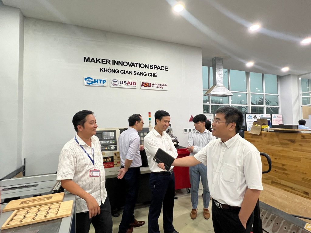 The teachers also expressed interest in the science and technology incubation activities that the Saigon Hi-Tech Park Incubation Center (SHTP-IC) is undertaking. The team in charge of Maker Innovation Space at SHTP-IC also introduced in detail the support content for technology startups, opening more orientations to connect with Hanoi University of Science and Technology in ecosystem development activities. innovative entrepreneurship.