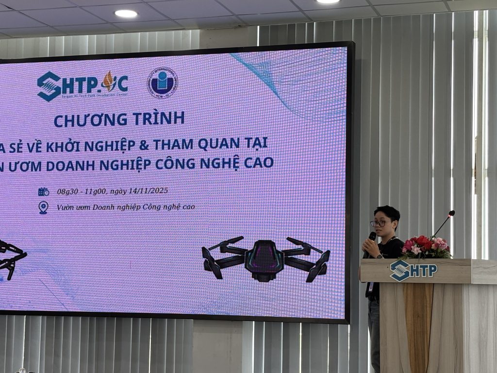 Sáng ngày 14/11/2025, tại Vườn ươm Doanh nghiệp Công nghệ cao (SHTP-IC), chương trình chia sẻ về khởi nghiệp và tham quan đã được tổ chức thành công. Sự kiện được phối hợp tổ chức bởi SHTP-IC và Trường Đại học Quốc tế – Đại học Quốc gia Tp.HCM. Chương trình đặc biệt mang đến cho các em cơ hội quý báu để tìm hiểu về môi trường khởi nghiệp, tích lũy kiến thức thực tế và trực tiếp tham quan cơ sở vật chất tại Vườn ươm.