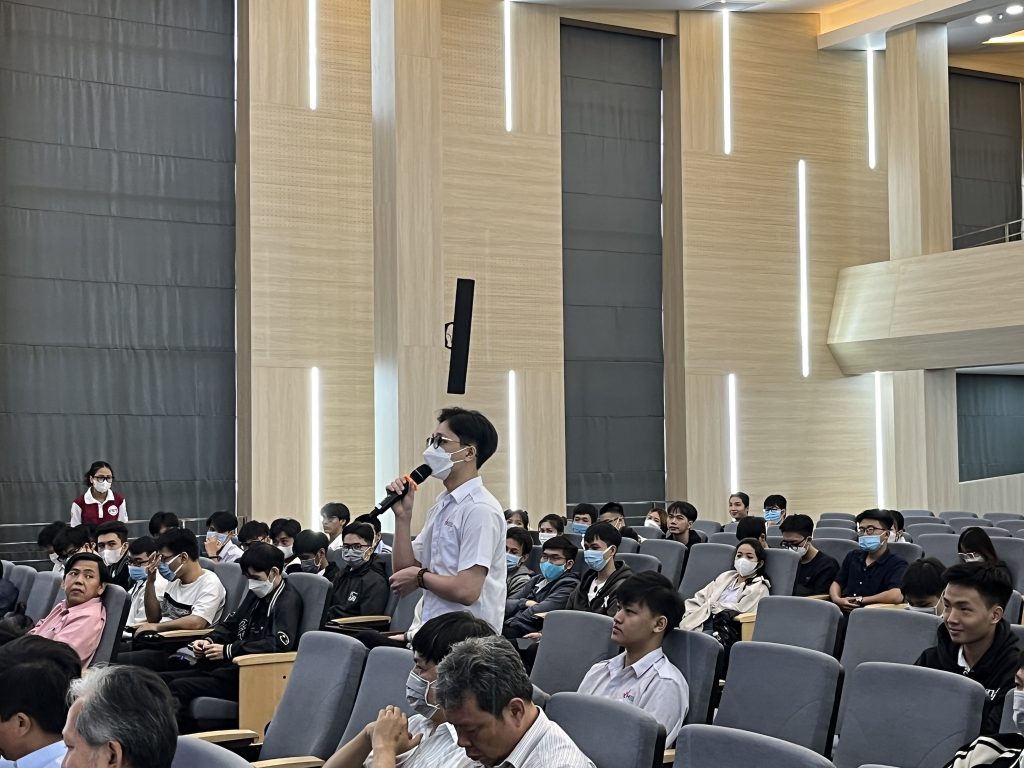 Phần chia sẻ của anh Lương Vũ Đăng Quang – CEO Công ty TNHH Kỹ thuật Thiết bị y tế AMED và anh Lê Mai Tùng – CPO Công ty CP EyeQ Tech đã mở ra cho các bạn sinh viên nhiều ý tưởng ứng dụng công nghệ vào cuộc sống, cũng như gợi ý nhiều cơ hội thực tập phù hợp với ngành học của sinh viên. Bên cạnh đó, các dự án khởi nghiệp tại khoa cũng đặt nhiều sự quan tâm và mong muốn tìm hiểu thêm về chương trình ươm tạo của Vườn ươm Doanh nghiệp Công nghệ cao.
