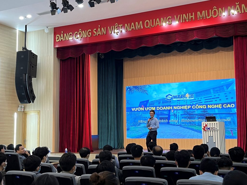 Chương trình do Vườn ươm Doanh nghiệp Công nghệ cao và Khoa Công nghệ Điện tử, Trường ĐH Công nghiệp TP.HCM tổ chức đã thu hút đông đảo giảng viên và sinh viên tham dự.