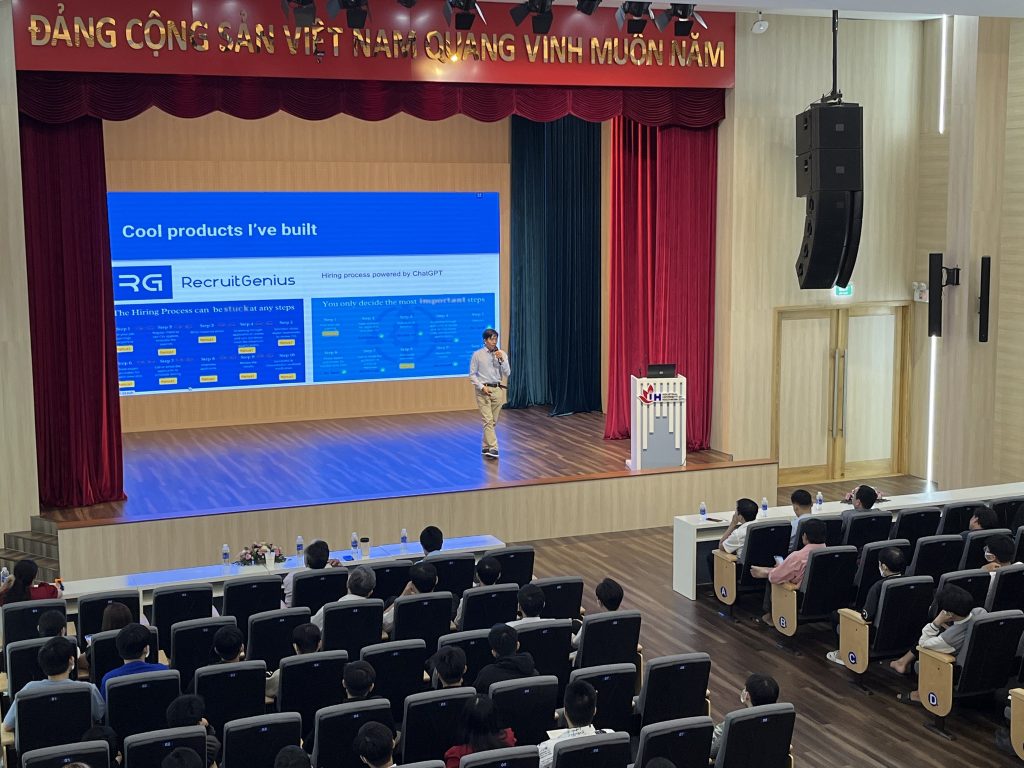 Phần chia sẻ của anh Lương Vũ Đăng Quang – CEO Công ty TNHH Kỹ thuật Thiết bị y tế AMED và anh Lê Mai Tùng – CPO Công ty CP EyeQ Tech đã mở ra cho các bạn sinh viên nhiều ý tưởng ứng dụng công nghệ vào cuộc sống, cũng như gợi ý nhiều cơ hội thực tập phù hợp với ngành học của sinh viên. Bên cạnh đó, các dự án khởi nghiệp tại khoa cũng đặt nhiều sự quan tâm và mong muốn tìm hiểu thêm về chương trình ươm tạo của Vườn ươm Doanh nghiệp Công nghệ cao.