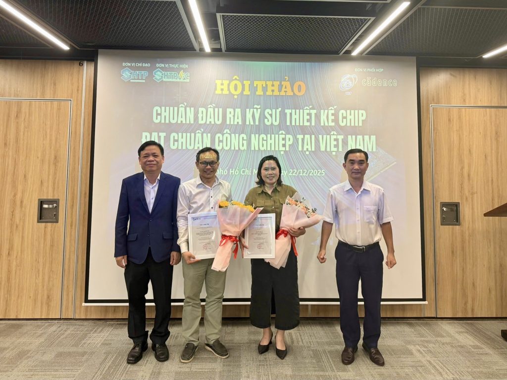 Chiều ngày 22/12/2025, Hội thảo “Chuẩn đầu ra kỹ sư thiết kế chip đạt chuẩn công nghiệp tại Việt Nam” do Vườn ươm Doanh nghiệp Công nghệ cao (SHTP-IC) tổ chức đã nhận được sự hưởng ứng mạnh mẽ từ rất nhiều giảng viên, sinh viên, kỹ sư và các đơn vị quan tâm đến lĩnh vực vi mạch – bán dẫn.