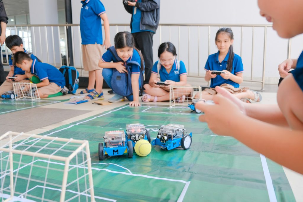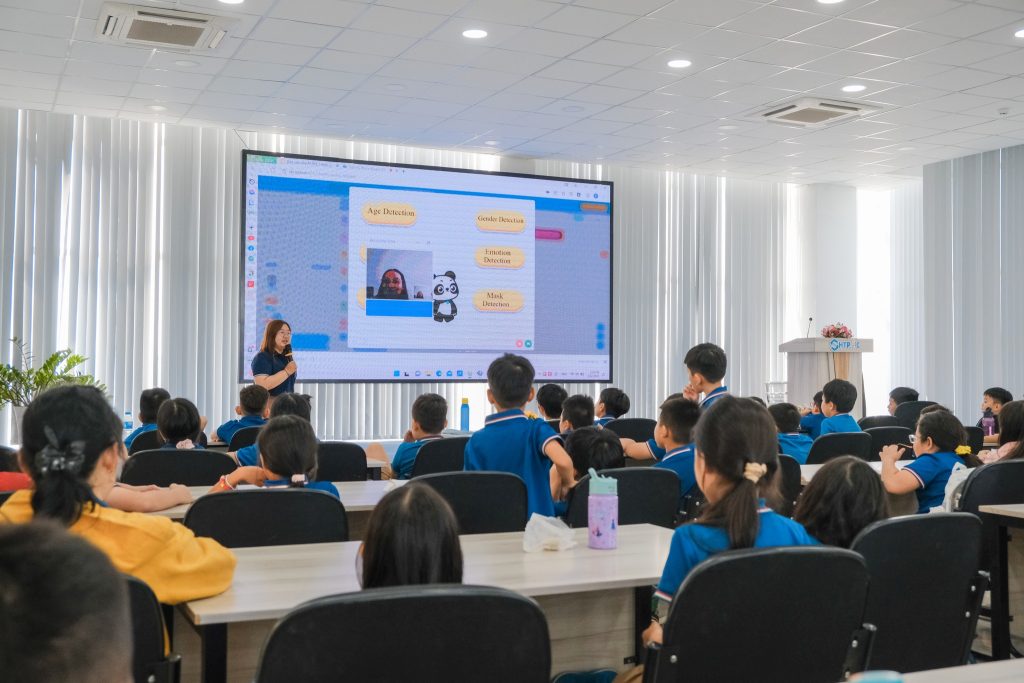 🤖 Các em được trải nghiệm thực tế các mô hình STEM như điều khiển robot, lập trình robot… Hơn nữa, khóa học ngắn về AI – Trí thông minh nhân tạo đã giúp các bạn nhỏ hiểu thêm nhiều về ứng dụng của AI trong cuộc sống thông qua tính năng nhận diện khuôn mặt và phân biệt giới tính, cho biết độ tuổi…