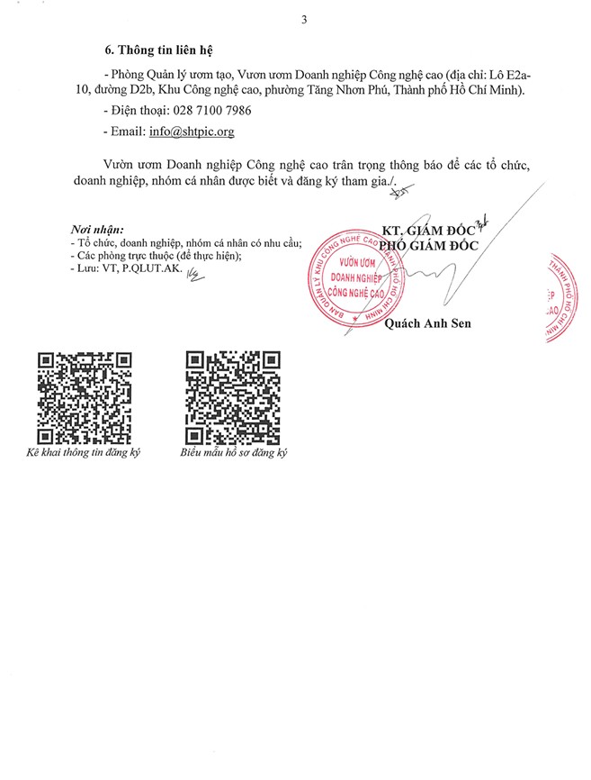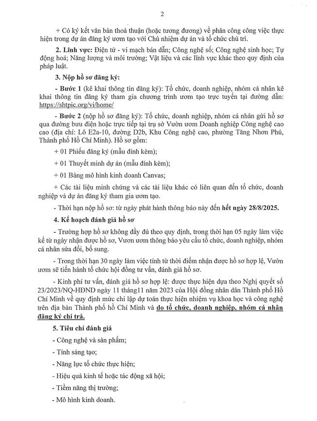 THÔNG BÁO “Về việc tiếp nhận hồ sơ đăng ký tham gia chương trình ươm tạo tại Vườn ươm Doanh nghiệp Công nghệ cao tháng 8/2025”