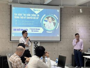 Với vai trò là Khách mời đặc biệt, Anh Ngô Anh Tuấn, IT Security Manager tại TMA Solutions, đã chia sẻ những kinh nghiệm chuyên sâu và thực chiến về an toàn thông tin. Các phân tích giá trị của anh tập trung làm rõ vai trò thiết yếu của bảo mật thông tin, cùng với tầm quan trọng của các chứng chỉ và tiêu chuẩn như ISO 9001, ISO 9000, tiêu chuẩn cơ sở và các quy định pháp lý liên quan. Những chia sẻ này không chỉ nhấn mạnh việc bảo vệ doanh nghiệp và sản phẩm, mà còn đề cập đến việc đảm bảo an toàn an ninh mạng, bảo vệ người tiêu dùng. Qua buổi nói chuyện, Anh Tuấn đã giúp nâng cao đáng kể năng lực chuyên môn cho đội ngũ nhân sự và các nhà lãnh đạo doanh nghiệp tham dự.